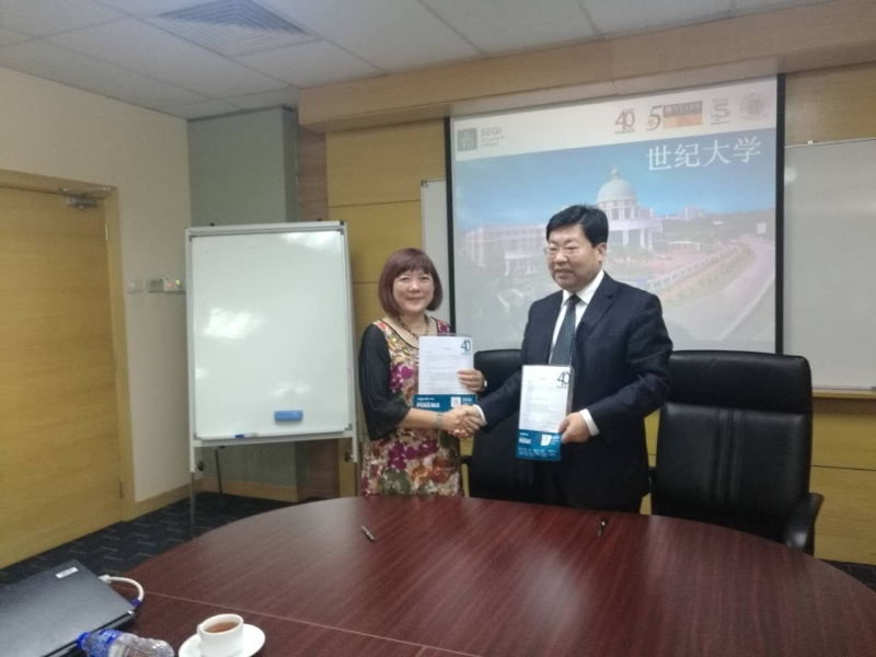 学院党委书记盛新丰与马来西亚世纪大学校长邱美兰签署合作办学协议