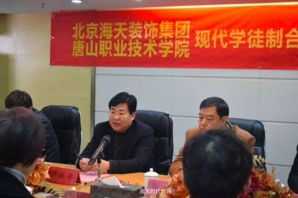 12月12日,亿百体育与北京海天装饰集团现代学徒制合作办学签约仪式在海天集团武汉运营中心举行。学院党委书记盛新丰出席签约仪式,常务副院长李治田与北京海天集团董事长海军签署合作协议。双方将以现代学徒制为立足点,共同打造“产教融”人才培养模式,实现企业化教学与员工化管理,共同培养现代装饰行业所需技术技能人才。