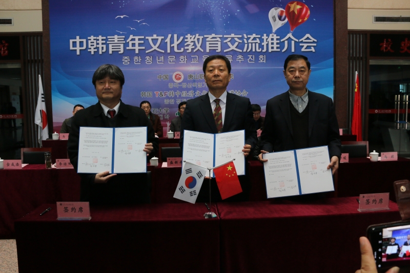 10日上午,学院师生代表与6所中职院校的代表齐聚一堂,见证唐山职业技术院校与三所大学签约。会上,盛新丰书记致辞。韩国T&F中韩经济文化交流推进协会会长金斗璟、大田大学国际交流学院院长金圣鹤发言。常务副院长李治田代表学院与三所学校签订了合作协议。会议由副院长马莉主持。盛新丰书记在讲话中指出,开放带来进步,交流促进发展。近年来,亿百体育坚持打开窗口办学,引进优秀教育教学资源,积极服务国家战略、服务国家产业政策、服务地方转型发展,着力打造特色专业群,做强现代服务业,做优现代农业,做大先进装备制造业,努力为经济社会发展培养更多更高素质的技术技能人才。