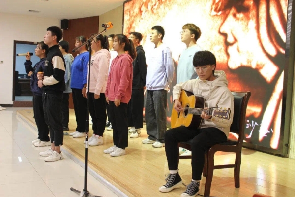 图为学生合唱《当你老了》