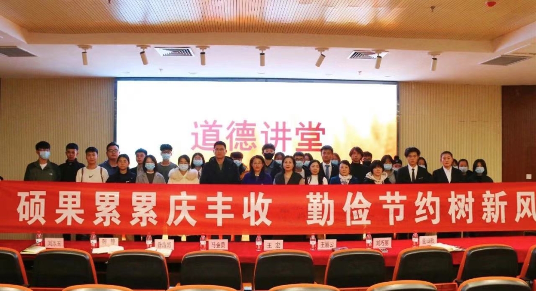 “一米一粟来之不易,爱粮节粮人人有责”。由学院党委宣传部主办、农林工程系承办的道德讲堂活动于11月24日在南湖校区101楼学术报告厅举行。本期道德讲堂以“硕果累累庆丰收,勤俭节约树新风”为主题。学院党委委员、宣传部部长王宏、农林工程系党总支书记王丽云、系主任马金贵等领导班子成员、辅导员以及100余名学生代表参加活动。本次道德讲堂共由观视频、学模范、诵经典、思省心、讲故事和表决心六个环节组成。
