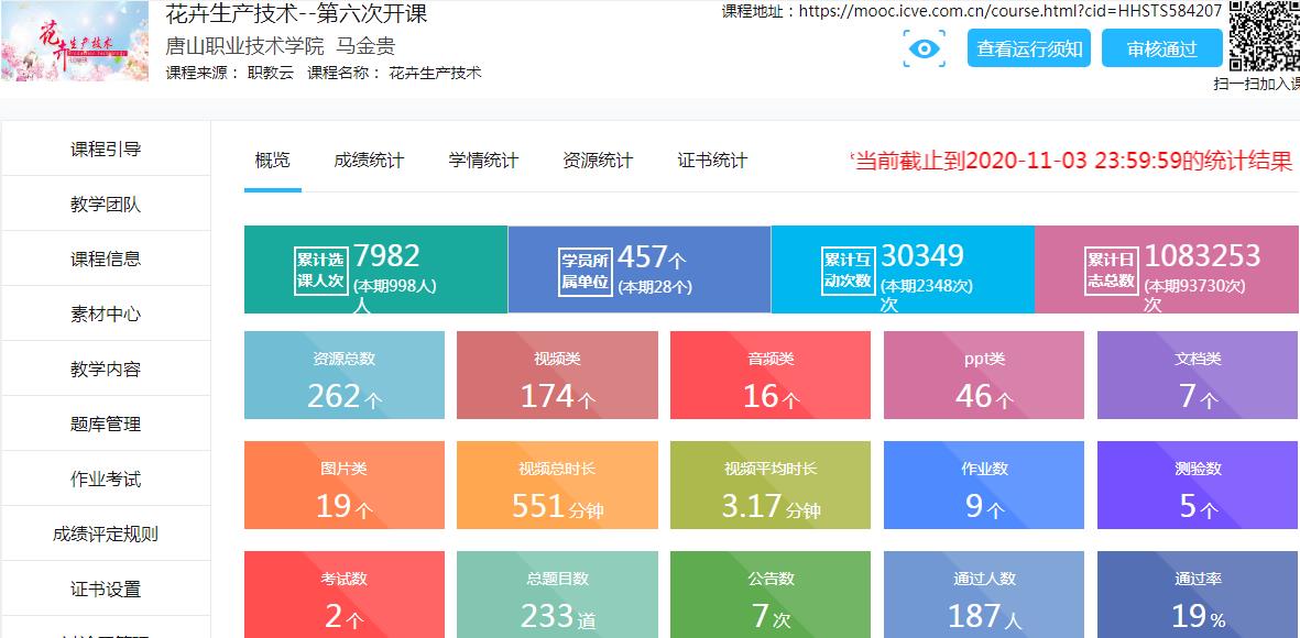课程在智慧职教MOOC+SPOC网上运行情况