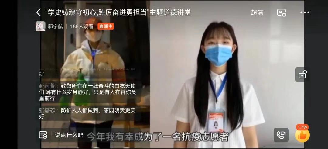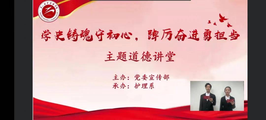 4月21日,由亿百体育党委宣传部主办,护理系承办的“学史铸魂守初心,踔厉奋进勇担当”主题道德讲堂“云”端开讲。学院党委副书记胡珍芬,党委委员、宣传部长王宏,护理系领导及师生代表等200余人观看直播。