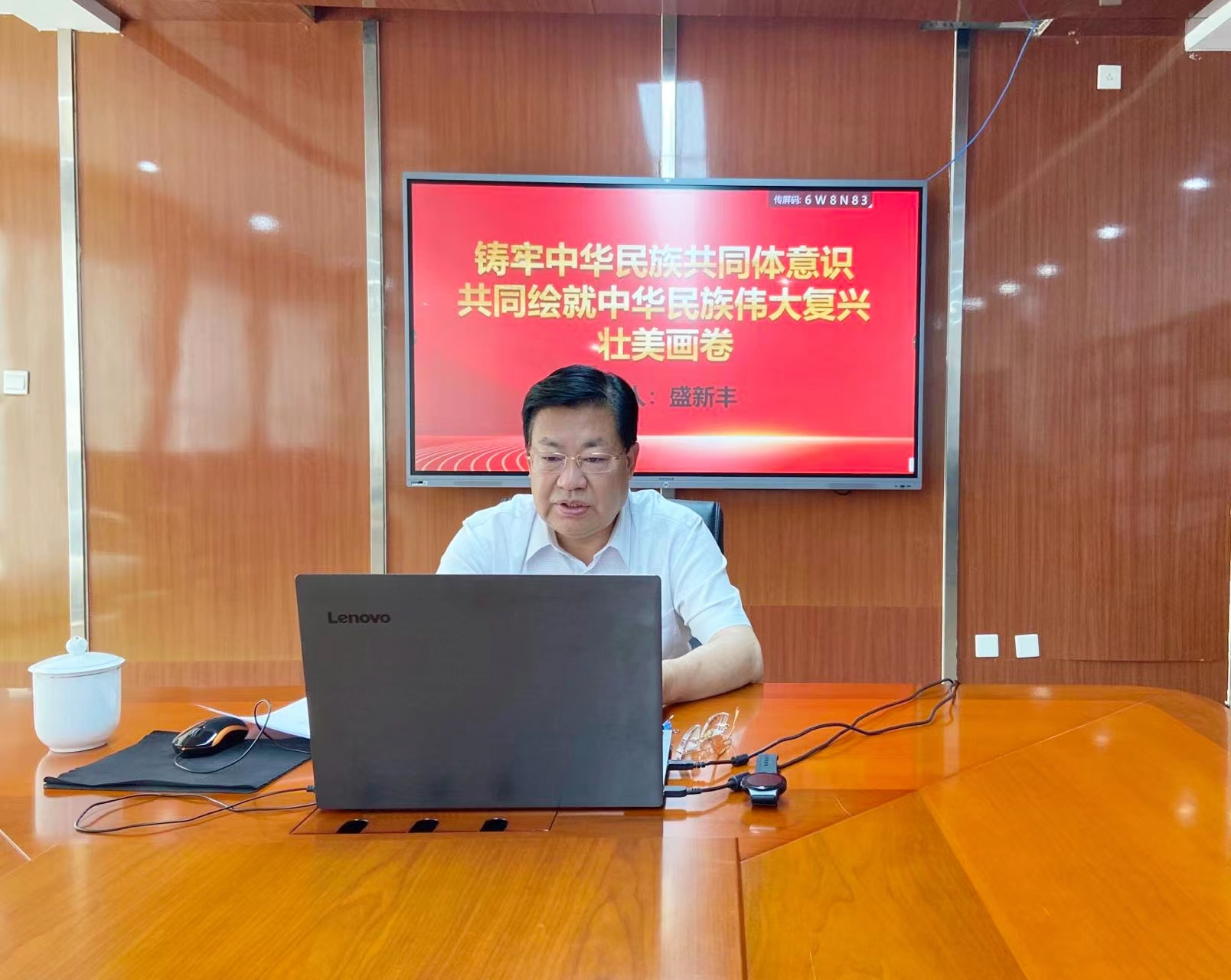 6月15日,盛新丰以《百年奋斗谋复兴 勇毅前行兴伟业》为题,就党的十九届六中全会精神进行深入解读,帮助学生进一步弄清楚中国共产党为什么能、马克思主义为什么行、中国特色社会主义为什么好的历史逻辑、理论逻辑、实践逻辑;坚定学生对党的全面领导的信任、对中国特色社会主义的信念、对全面建设社会主义现代化国家和实现中华民族伟大复兴的信心,厚植爱党爱国爱社会主义的情感。17日,盛书记以《铸牢中华民族共同体意识 共同绘就中华民族伟大复兴壮美画卷》为题为学生线上讲授思政课,主要从深刻把握中华民族多元一体的基本国情、全面认识民族团结进步事业的伟大成就、推动新时代党的民族工作高质量发展等三个方面进行深入讲解,引导学生深刻认识铸牢中华民族共同体意识的历史必然性、极端重要性和现实针对性,引导学生深刻领会推进新时代党的民族工作高质量发展的指导思想、战略目标、重点任务和政策举措。盛新丰书记的思政课案例丰富、数据翔实、讲解生动,有感染力和针对性。盛书记在课堂上寄语青年学生,要以史为鉴、开创未来、埋头苦干、勇毅前行,勇敢地肩负起历史使命,努力成长为能担当民族复兴大任的时代新人,在全面建设社会主义现代化国家的新征程中贡献青春力量,谱写壮丽的青春之歌。