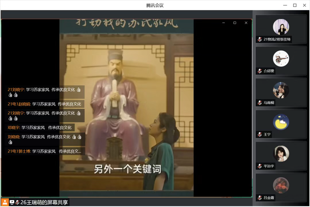 在看短片环节中,一起观看了苏轼家风短片,了解了苏氏家风,自古优秀家风就是中华文化的重要组成部分。